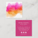 Chic watercolor business cards in a unique square format feature your name or company name layered on a blooming inkblot illustration in bright, colorful sunset hues of fuchsia pink ad goldenrod. Add your full contact information to the back in white on magenta. Includes three social media icons and a template field for your username or handle.