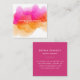 Chic watercolor business cards in a unique square format feature your name or company name layered on a blooming inkblot illustration in bright, colorful sunset hues of fuchsia pink ad goldenrod. Add your full contact information to the back in white on magenta.
