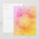 Send a touch of warmth with this sunset watercolor texture postcard. The blend of golden yellow, deep orange, and soft pink creates a dreamy, artistic feel reminiscent of a glowing evening sky. This elegant and modern design is perfect for event invitations, thank-you notes, business branding, or personal messages. The rich, textured gradient makes this postcard stand out, adding a unique aesthetic to any occasion. Ideal for weddings, corporate events, or stylish stationery collections, this postcard delivers a message with sophistication and a creative touch.