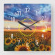Sunset with Beauty of Sunflowers - Rustic Outdoor Square Wall Clock