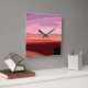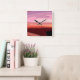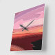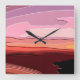 An abstract art design of sunset in pink, lilac, black, red and peach colors.