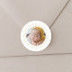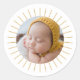 Highlighting your little bundle of joy, our Sunshine Baby Photo Circle Sticker adds a charming touch to your announcements or thank you cards. Featuring a sunny design with a circle photo template at the center, this sticker is perfect for showcasing your baby's adorable face. Use it as an envelope seal or to add a personal touch to various baby-related stationery. Capture the essence of your newborn's sweetness and share it with friends and family with this delightful sticker. Whether it's announcing their arrival or expressing gratitude for gifts, this sticker is a lovely addition to any baby-related correspondence.