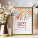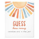 Welcome your little ray of sunshine with this Sunshine Baby Shower Guess Game Sign featuring an adorable yellow, gold, orange, blue and peach watercolor sunshine.