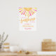 Welcome guests to your baby shower with this bright and cheerful sun-themed welcome sign! A large sun with vibrant rays in shades of yellow, orange, pink, and red sits at the top, setting the tone for a warm and joyful celebration. The phrase "A little ray of sunshine is on its way!" is displayed in a playful mix of modern fonts and bold script typography, adding a charming touch.