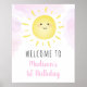 Sunshine Clouds Pink Girl Birthday Welcome Poster