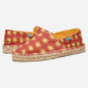These shoes are amazing, well constructed, vivid color durable fabrics, can wear comfortably without socks…and pick your liner color. I ordered several and wore all Summer into Fall. A GREAT choice and hundreds of fabrics to choose from! Thanks so much to the designers…a real winner!! Order one size up to wear with socks. Usual size is snug at first but does stretch after several earrings. .