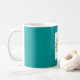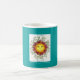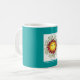 Basic mug decorated with the "Sunny Daydreams" design. Design is surrounded by a peacock background and trimmed in a yellow orange border
