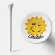 This sunshine design golf tee is a small peg, made of wood and is used used to elevate a golf ball slightly off the ground for the first stroke on a hole. Its purpose is to allow the golfer a cleaner strike and potentially greater distance and accuracy. Tees are inserted into the ground with the ball resting on top. Sun design golf tee.
