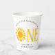 Are you planning a first birthday party? These cute little sunshine first birthday party paper cups are decorated with a yellow watercolor sun. They are easily customizable. Original Watercolor © Michele Davies.