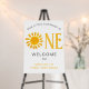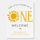 Are you planning a first birthday party? This cute sunshine first birthday party welcome sign is decorated with a yellow watercolor sun and stylish typography. Easily customizable. Original Watercolor © Michele Davies.