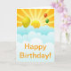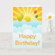 Sunshine happy face and balloons in the clouds. Happy Birthday Card.