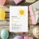 Having your Sunshine Is Turning One Birthday Party Invitation match the theme of your party is a great detail that your guests will appreciate. The thoughtfulness of a consistent party theme is often appreciated and can show your guests that you can host a cohesive event.