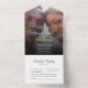 If you're looking for a sophisticated yet straightforward invitation suite that perfectly captures your wedding vision, look no further. Showcase your favorite engagement or couple's picture on the front and add a personal touch that resonates with your loved ones. Delicately applied over the photo, the dark transparent gradient overlay adds depth and enhances the overall aesthetic, creating an eye-catching visual appeal. Carefully chosen script and classic fonts bring the wedding details to life, exuding a joyful and romantic energy that sets the tone for your special day. Streamline the RSVP process for your guests with the convenience of a tear-off postcard, making it effortless for them to respond and ensuring you have an accurate headcount. Our all-in-one wedding invitation is not just about convenience – it's a statement of your style and intention. With its simple yet modern design, this invitation perfectly complements weddings that embrace contemporary trends while maintaining an understated elegance. Don't miss out on the opportunity to impress your guests with this all-in-one wedding invitation! Order yours today and let your special day start with an invitation that speaks volumes about your love story.