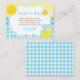 Drop one of these cute Sunshine and Lemonade Blue and Yellow book request cards into your baby shower invitations when requesting books instead of cards. Featuring a cute poem to politely ask for specific gifts when having a shower party which will bring a smile to the face of the receiver.