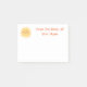 Send notes to your coworkers with a personalized fun and happy notepad. Just fill in your name or nickname and get to writing those important memos and reminders down. A happy and vibrant sunshine is on a white notepad with orange text.