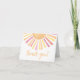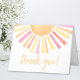 This bright and cheerful sun-themed thank you card is the perfect way to express gratitude after your celebration. The front of the folding card features a vibrant sun at the top with colorful rays in shades of yellow, pink, orange, and red, bringing warmth and joy to your message. Below the sun, the phrase "Thank You!" is displayed in elegant script, with fonts in soft yellow, pink, and orange hues to match the sunny theme.