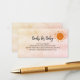 A bring a book request, ticket insert for a baby shower. A rose gold, blush gradient background. Decorated with a smiling sun.