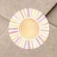 This round sticker design features a simple pink sun at the center, radiating with soft, cheerful rays. With no words, it's perfect for a baby shower, a first trip around the sun birthday, or anyone who loves a sunny, summer vibe.