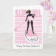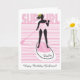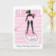 A cute stand up paddle board greeting card design just for girls. A silhouette of a girl on a paddleboard against a background of pink stripes and wavy lines is just right for any water girl who loves the sport of paddling. Customize it – add a name!