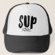 Trucker printed with "SUP" black and white wave design for anyone who loves to stand up paddle board.
