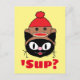 'Sup? Sock Monkey Hat Cartoon Cat Humorous Postcard by AaronDesignsUS.