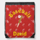 A Super Baseball Drawstring Backpack with a large Baseball Bat and Ball graphic in the centre with small semi transparent baseball players on a background colour of your own choice. The words can be changed to your favourite team, school, college or anything you can think of. Ideal for your games kit.