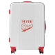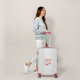 The luggage itself is awesome. So much utility for a carry-on bag. Lots of zippered pouch compartments to keep everything from getting everywhere. And it has a TSA approved lock and a dust cover! Love it. The printing is terrific. Love the way it wraps around the top and bottom. So happy the bumpers, wheels and handle color matches the design perfectly. She's gorgeous.