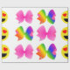 The fashionista will love this wrapping paper adorned with big rainbow bows, big pink bows, and trendy heart eyed smiling faces!