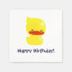 Paper napkins featuring a cheerful and smiling yellow rubber ducky with the words "Happy Birthday!" below. Great for birthday parties! The words "Happy Birthday!" are customizable.