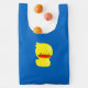 A cheerful and smiling yellow rubber ducky BAGGU reusable blue bag.