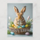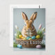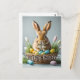 This unique postcard features an absolutely adorable bunny rabbit resting in an Easter holiday basket.