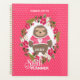 Fun whimsical sloth in in a pretty wreath of flowers illustration on pink white polka dot spots ideal gift for any one who loves to keep planners and so easy to customize with a personal name, year other text of your choice