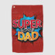 Super Dad Mustache Modern Grunge Golf Towels features the text "Super Dad" in modern red and yellow typography on a blue and red grunge background accented with a mustache. Gifts for Dad for birthday, Father's Day, Christmas, holidays and more. Created by Evco Studio www.zazzle.com/store/evcostudio