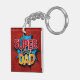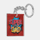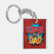 Super Dad Mustache Modern Grunge Keychains features the text "Super Dad" in modern red and yellow typography on a blue and red grunge background accented with a mustache. Gifts for Dad for birthday, Father's Day, Christmas, holidays and more. Created by Evco Studio www.zazzle.com/store/evcostudio