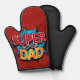 Super Dad Mustache Modern Grunge Oven Mitts & Pot Holders features the text "Super Dad" in modern red and yellow typography on a blue and red grunge background accented with a mustache. Gifts for Dad for birthday, Father's Day, Christmas, holidays and more. Created by Evco Studio www.zazzle.com/store/evcostudio