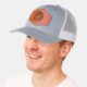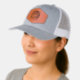 Custom Leather Patch Hat, Sytle: Adult Retro Trucker Cap, Color: Heather / Black, Shape: Circle