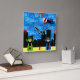 Super heroes on the ground and flying about in a rain soaked city with skyscrapers rising up in the distance.. Perfect for that super hero birthday boy!