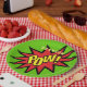 These colorful fun paper plates are perfect for any Super Hero or Super Hero fan! They are featured in bright lime green with the word POW! in yellow surrounded by a red burst. Your name is featured in yellow along the top of the burst when added in the box provided on your screen. Select Customize to change the background color.