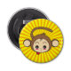 An illustration of a monkey face with blushing cheeks and his tongue sticking out. Looking cute and kawaii. The background is a cheerful yellow and orange pattern with sunrays bursting out around the monkey making him look super powerful.