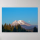 A landscape photograph of a moon event happening known as a Super Moon. The moon rise is near Mount Rainier in Washington.
