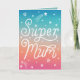 "super mum" with hearts and stars over painted ombre sunset background; original lettering and illustration by Becky Nimoy