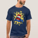 My 11 yo wore adult XL (5’7” 165#). The 8yo is small framed. She wore adult small and tied it in the back. Grandma wore adult large with long sleeve shirt underneath. Tall girl adult medium. Dark haired male adult large. Good quality dark Heather gray, Gildan brand shirt. -it was next up from basic choice and cost about $20 per shirt. Not too thick or thin. Washed and dried well, no major shrinkage. Not see-through. Can wear a bra under it fine. Screen print is just as shown and well done, front and back.