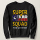 Motivational SUPER STAAR SQUAD Teacher Test Day sweatshirt with CUSTOMIZABLE TEXT. Designed for teachers to encourage their students who are taking the Texas state assessment tests. The artwork shows the words SUPER STAAR SQUAD in bold typography. STAAR is created using the Lone Star flag of Texas, with a yellow rose entwined in the A. Underneath there is CUSTOMIZABLE TEXT which reads YOU GOT THIS which can be PERSONALIZED with a motivational message for the student or teacher's class. Buy matching teacher sweatshirts for your colleagues.