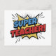 A vibrant, superhero-inspired vector design featuring a teacher in a heroic pose, complete with a cape and mask, accompanied by bold, "Super Teacher" typography in an action-packed comic book style.