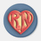 Superhero emblem for nurses; a heart-shaped border with "RN" lettering. Red/yellow graphic, on t-shirts, sweatshirts, cards, gifts.