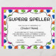 Celebrate your students' spelling achievements with the "End of Year Superb Speller Student Recognition Award." This beautifully designed certificate is perfect for acknowledging hard work and excellence in spelling. Personalize it with the student's name and date to create a memorable keepsake. Ideal for teachers and educators who want to inspire and reward their superb spellers!