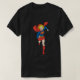 My 11 yo wore adult XL (5’7” 165#). The 8yo is small framed. She wore adult small and tied it in the back. Grandma wore adult large with long sleeve shirt underneath. Tall girl adult medium. Dark haired male adult large. Good quality dark Heather gray, Gildan brand shirt. -it was next up from basic choice and cost about $20 per shirt. Not too thick or thin. Washed and dried well, no major shrinkage. Not see-through. Can wear a bra under it fine. Screen print is just as shown and well done, front and back.