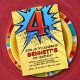 Superhero 4th Birthday Invitation