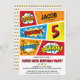 Plain white envelopes are included with paper invitations and will come to fit the invitation size you select. If you don’t need the envelopes, you may choose to not receive them by selecting the dropdown below "Envelopes" and choosing "None." If you’d like to have a design on your envelopes, you can browse all of these available envelopes to find the design that complements your Superhero Birthday Party Invitation Any Age.