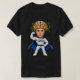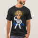 My 11 yo wore adult XL (5’7” 165#). The 8yo is small framed. She wore adult small and tied it in the back. Grandma wore adult large with long sleeve shirt underneath. Tall girl adult medium. Dark haired male adult large. Good quality dark Heather gray, Gildan brand shirt. -it was next up from basic choice and cost about $20 per shirt. Not too thick or thin. Washed and dried well, no major shrinkage. Not see-through. Can wear a bra under it fine. Screen print is just as shown and well done, front and back.